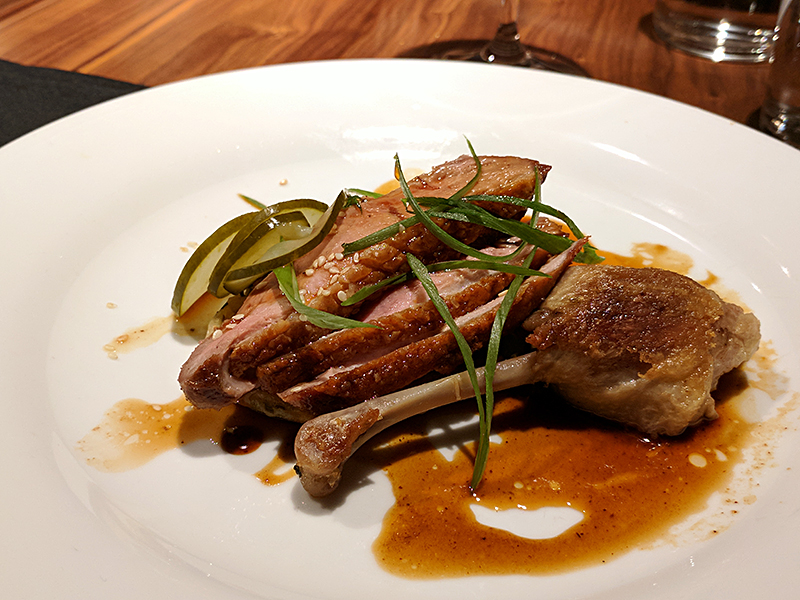 Alma: Duck Breast & Confit sweet garlic tatsoi, scallion pancake, pickled cucumber Published October 26, 2017, 9:57 at 800 × 600 in Restaurant Alma III, Fall 2017 ← Previous Next →