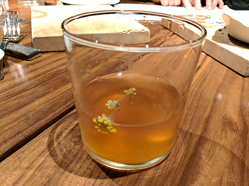 Alma: Sazerac Published October 26, 2017, 9:57 at 800 × 600 in Restaurant Alma III, Fall 2017 ← Previous Next → One member of the party elected to start with a sazerac, which he quite liked. Not sure what the shrubbery atop it is: fennel pollen?