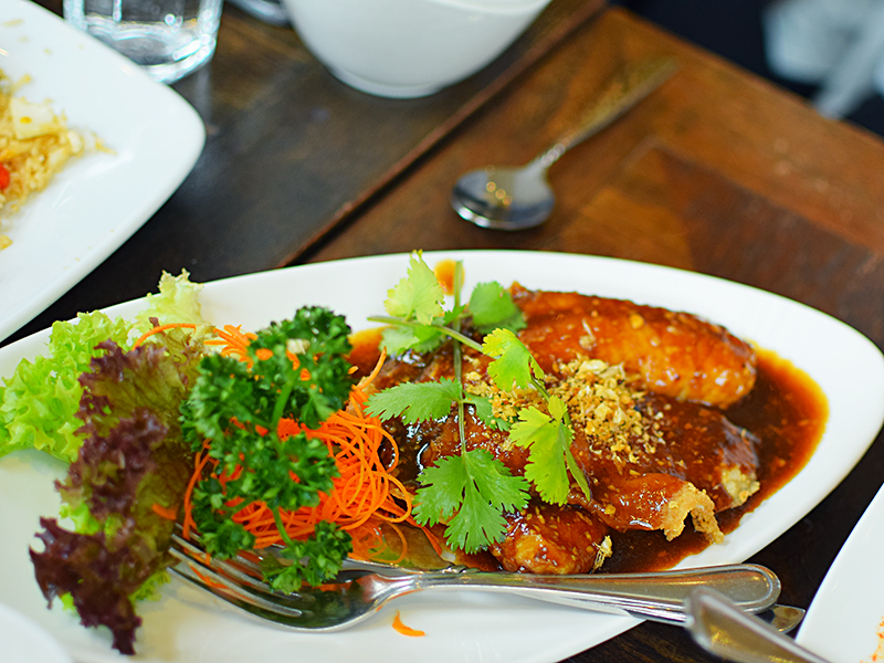 Thai Square: Garlic tilapia Published November 6, 2017, 9:11 at 800 × 600 in Thai Square (London) ← Previous Next → This less spicy garlic tilapia was better.