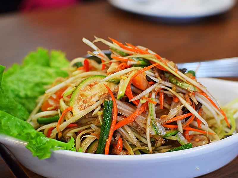 Thai Cafe: Lao-style papaya salad Published December 17, 2017, 21:48 at 800 × 600 in Thai Cafe (St. Paul) ← Previous Next → We got both the Lao and Thai-style somtums. The Lao version is funkier with far more fish sauce and some of us preferred it (I was among that number)…