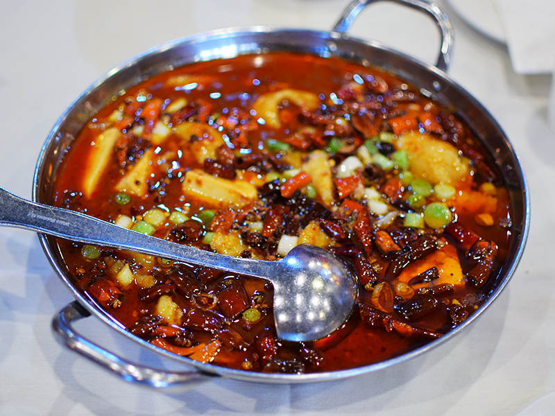Chengdu Taste: Sliced fish with tofu pudding Published December 19, 2017, 23:16 at 800 × 600 in Chengdu Taste III (Los Angeles, December 2017) ← Previous Next → This is nobody’s idea of a mild, relief dish.