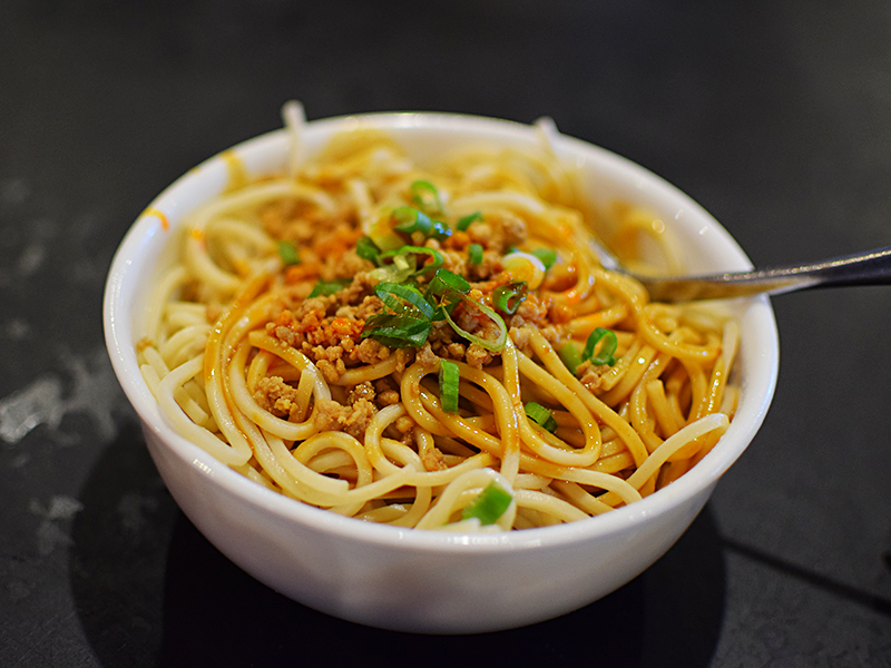 Grand Szechuan: Dan dan noodles Published January 1, 2018, 21:22 at 800 × 600 in Grand Szechuan, 2017 (Bloomington, MN) ← Previous Next → We got two orders of this—one mild, for the kids, and one regular for the rest of us.