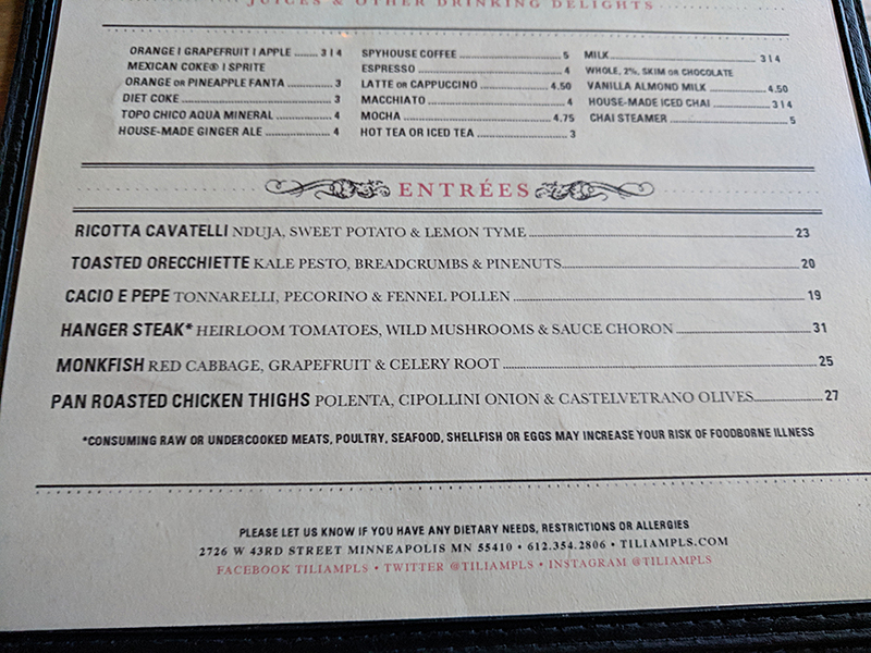Tilia: Entrees Published May 21, 2018, 20:45 at 800 × 600 in Tilia, Again (Minneapolis) ← Previous Next →