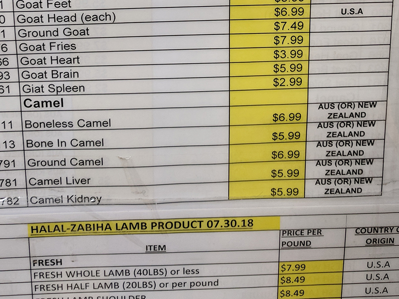 Holy Land: And yes, camel Published November 12, 2018, 21:08 at 800 × 600 in Holy Land Market (Minneapolis) ← Previous Next → I confess that while I have for a decade been planning to buy and cook camel, I have not yet done so.