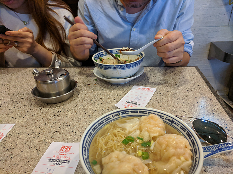 Tsim Chai Kee: Condiments Published December 5, 2018, 20:57 at 800 × 600 in Tsim Chai Kee + Mak’s Noodle (Hong Kong, December 2018) ← Previous Next → I followed my tablemates’ lead in using the soup spoon for chiili oil/sauce for wonton dipping.