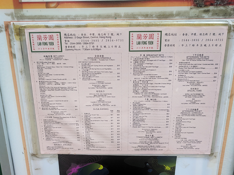 Lan Fong Yuen, menu Published December 9, 2018, 0:35 at 800 × 600 in The View from the Street (Hong Kong, December 2018) ← Previous Next →