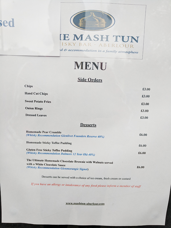 The Mash Tun: Menu, sides Published December 12, 2018, 21:30 at 600 × 800 in The Mash Tun (Aberlour, Scotland) ← Previous Next →