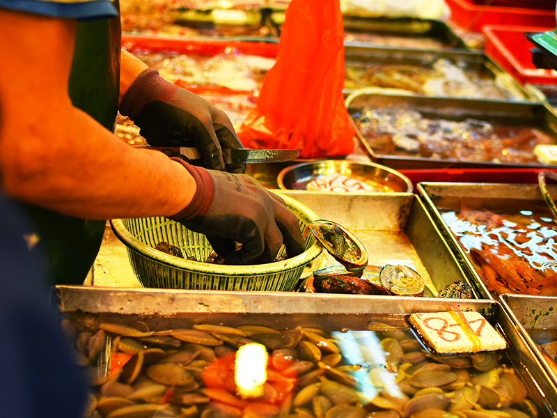 Sai Ying Pun Market, Shucker Published December 29, 2018, 21:02 at 800 × 600 in Seafood and More at Sai Ying Pun Market (Hong Kong, 2018) ← Previous Next → This man was shucking oysters at shocking speed.