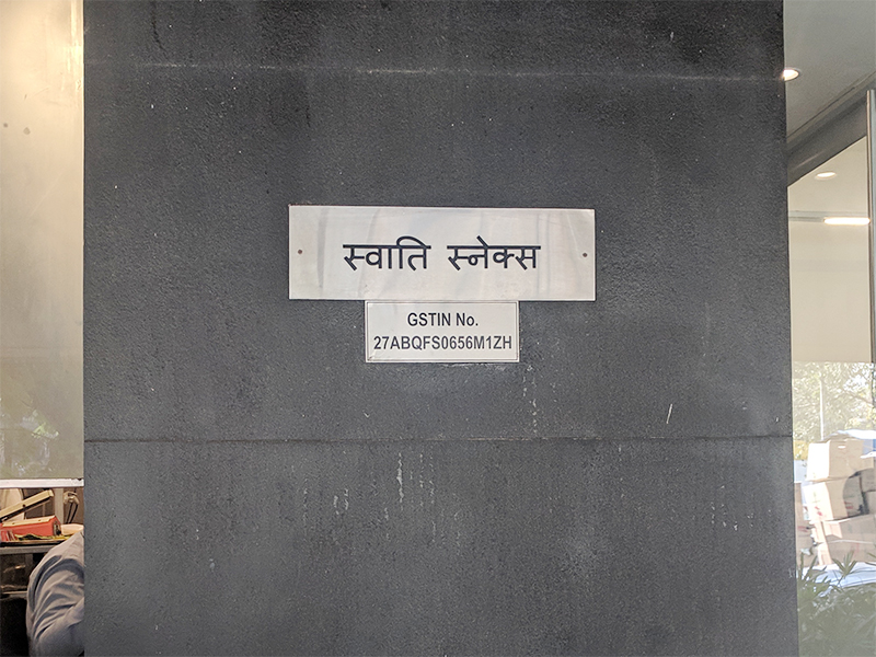 Swati Snacks: Nagari Published January 8, 2019, 10:11 at 800 × 600 in Swati Snacks (Bombay, December 2018) ← Previous Next → The sign in nagari script is much smaller.