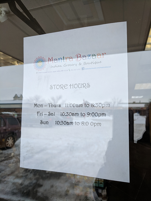 Mantra Bazaar, Store Hours Published February 11, 2019, 22:33 at 600 × 800 in Mantra Bazaar (Apple Valley, MN) ← Previous Next →