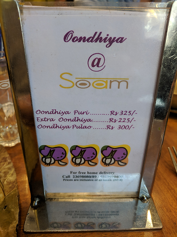 Oondhiya at Soam Published February 13, 2019, 20:05 at 600 × 800 in Soam (Bombay, December 2018) Next → Is “oondhiya” the plural of “undhiyu”?