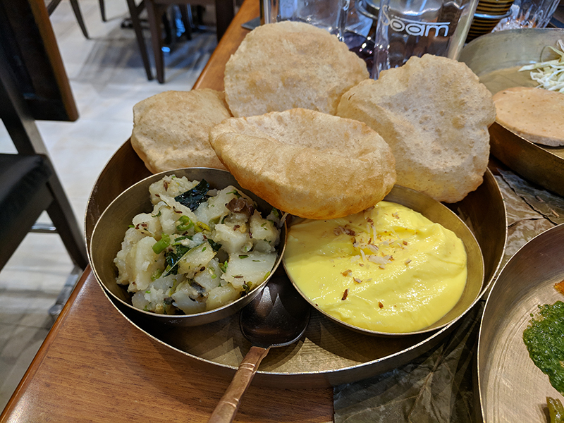 Soam, Shrikhand-puri and batata nu shaak Published February 13, 2019, 20:06 at 800 × 600 in Soam (Bombay, December 2018) ← Previous Next →