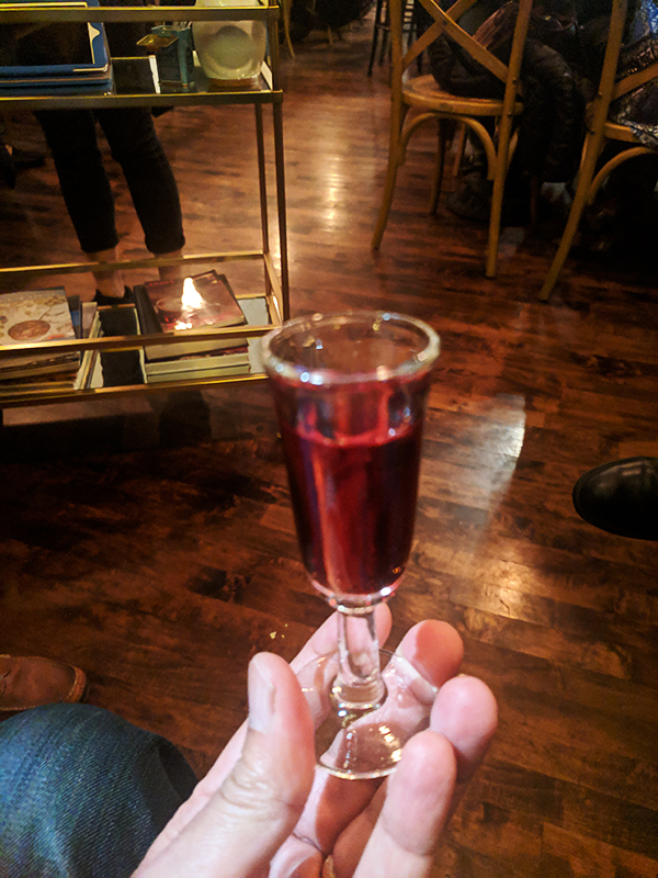 Hyacinth, Aperitif Published April 1, 2019, 10:51 at 600 × 800 in Hyacinth (St. Paul, MN) Next → The mini aperitif we were given to make up for having to wait for our table. Vermouth-based, I think.