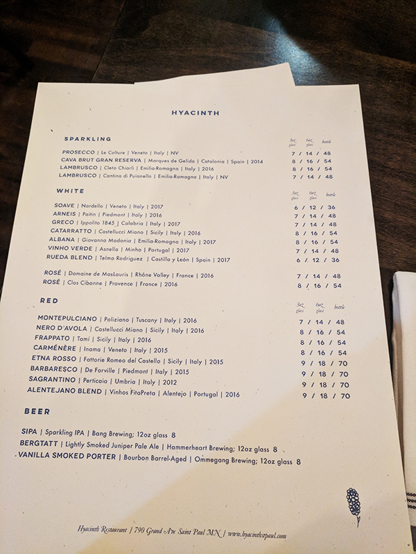 Hyacinth, Menu, Wine Published April 1, 2019, 10:52 at 600 × 800 in Hyacinth (St. Paul, MN) ← Previous Next →
