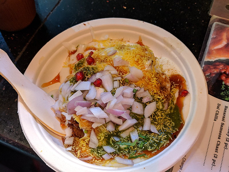 Chaat Chowk, Alu tikki Published May 18, 2019, 23:28 at 800 × 600 in Chaat x 2 (Delhi, December 2018) ← Previous Next → Hard to tell but there’s a nice alu tikki under there.