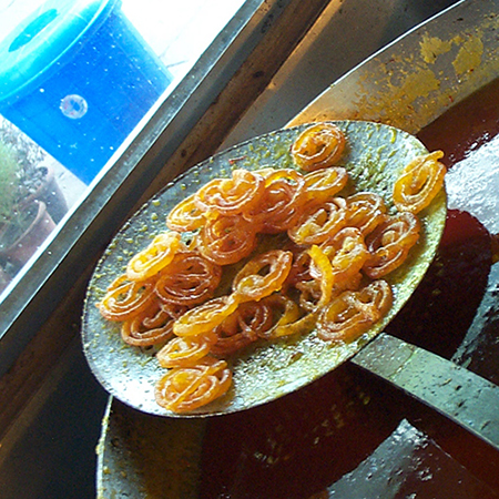 Proper jalebis Published May 25, 2019, 15:10 at 450 × 450 in What the Actual Fuck? (Covering the Coverage of South Asian Food) ← Previous This is what proper jalebis look like: each discrete jalebi in neat concentric circles, not some monstrous, coagulated orange blob. This picture was taken at the Friends Colony branch of Nathu’s in Delhi.