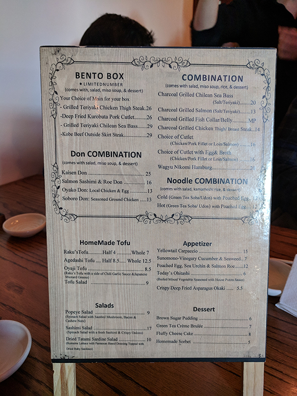 Raku, Dec 2018, Lunch specials Published May 30, 2019, 14:38 at 600 × 800 in Raku, Again (Los Angeles, December 2018) ← Previous Next →