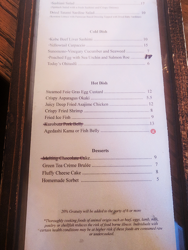 Raku, Dec 2018, Menu, Cold dish, hot dish Published May 30, 2019, 14:38 at 600 × 800 in Raku, Again (Los Angeles, December 2018) ← Previous Next →
