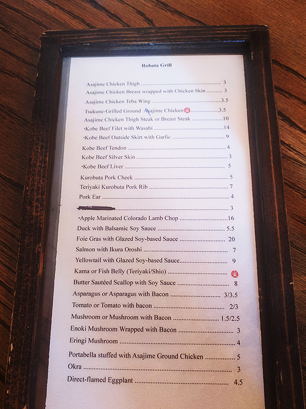 Raku, Dec 2018, Menu, Robata Published May 30, 2019, 14:38 at 600 × 800 in Raku, Again (Los Angeles, December 2018) ← Previous Next →