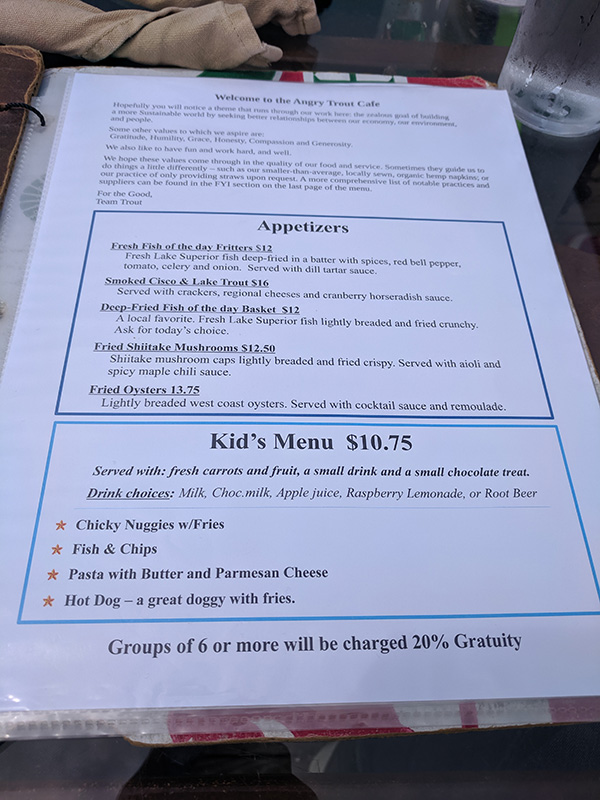 Angry Trout, Menu, appetizers, kids Published July 13, 2019, 22:22 at 600 × 800 in Angry Trout (Grand Marais, MN) ← Previous Next →