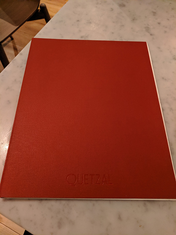 Quetzal, Menu