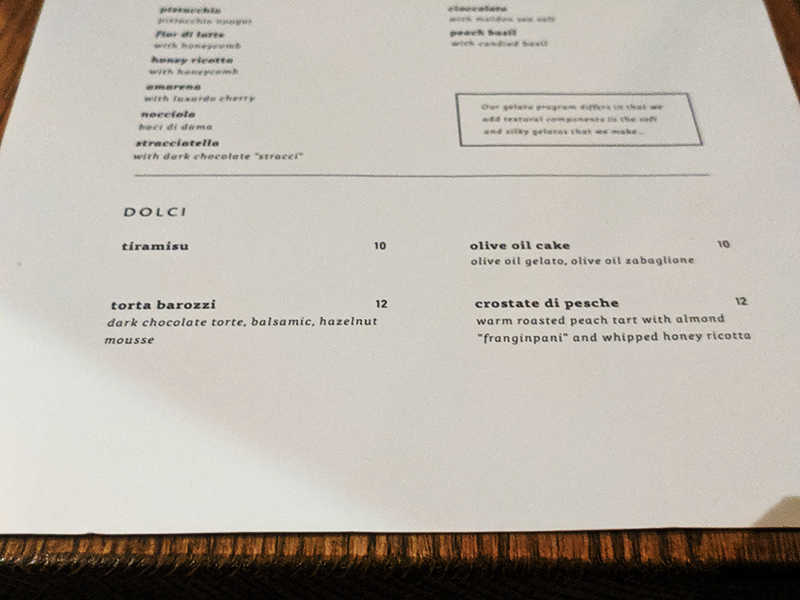 Rezdora, Menu, Dolci Published October 5, 2019, 19:56 at 800 × 600 in Rezdora (New York, August 2019) ← Previous Next →