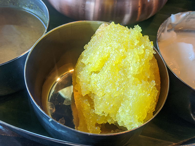 Kumar’s Mess, Weekday lunch, Rava Kesri Published December 9, 2019, 18:35 at 800 × 600 in Kumar’s Mess and the Changing Face of Indian Food in the Twin Cities Metro (Apple Valley, MN) ← Previous Next → This is basically sweetened semolina. This was just okay.