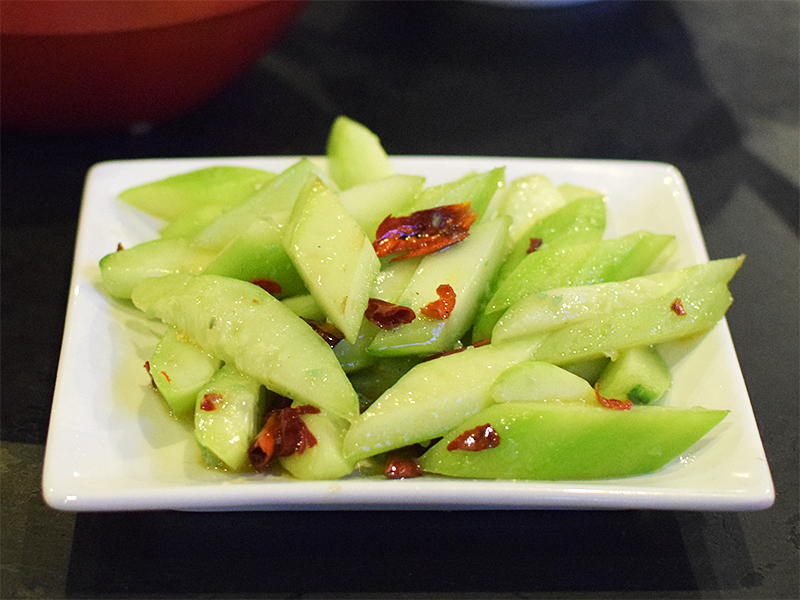 Grand Szechuan 2019, Szechuan cucumber Published January 3, 2020, 10:35 at 800 × 600 in Grand Szechuan, 2019 (Bloomington, MN) ← Previous Next → Slightly spicy, cool cucumbers are a good contrast.