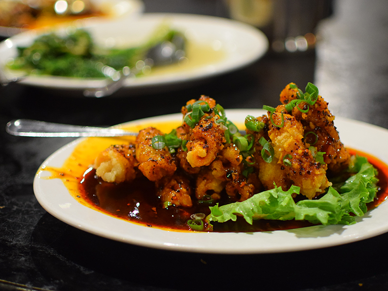 Grand Szechuan 2019, Triple flavour squid Published January 3, 2020, 10:35 at 800 × 600 in Grand Szechuan, 2019 (Bloomington, MN) ← Previous Next → And the inevitable triple flavour squid. In order to showcase its centrality to the meals we eat here with our usual group of friends I have not one but three photographs of it from over the year.