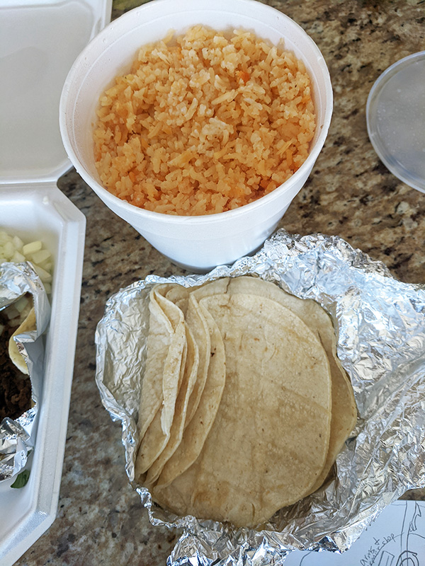 El Triunfo, Rice and Tortillas Published March 30, 2020, 21:47 at 600 × 800 in Pandemic Takeout 01: El Triunfo (Northfield, MN) ← Previous Next →