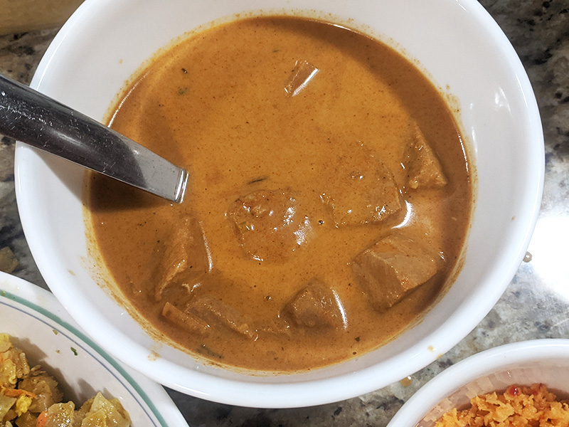 House of Curry, Fish Curry Published April 6, 2020, 19:13 at 800 × 600 in Pandemic Takeout 02: House of Curry (Rosemount, MN) ← Previous Next → This is the version with coconut milk.