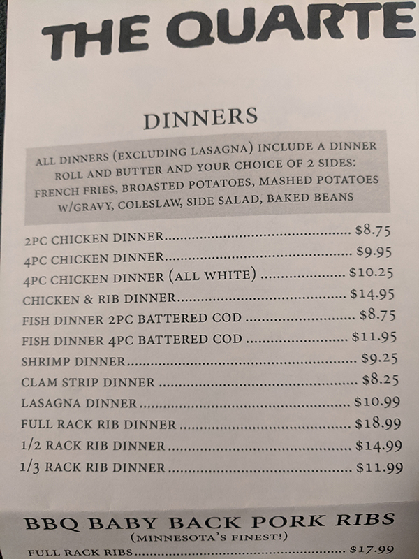 Quarterback Club, Dinners Published April 27, 2020, 20:50 at 600 × 800 in Pandemic Takeout 05: Quarterback Club (Northfield, MN) ← Previous Next →