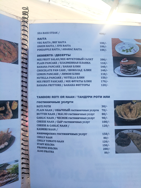 Blue Oasis, Menu, Sides, Dessert, Roti Published June 6, 2020, 13:34 at 600 × 800 in Eating by the Water (Goa, Jan 2020) ← Previous Next →