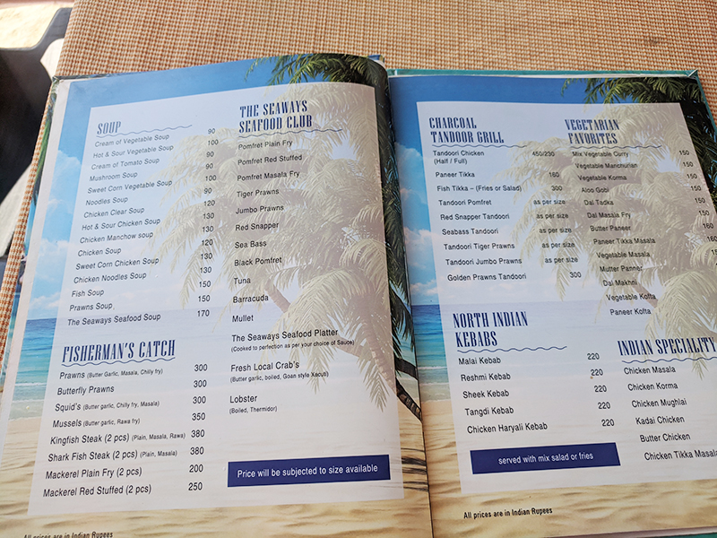 Seaways, Menu, Soup, Seafood, North Indian Published June 6, 2020, 13:33 at 800 × 600 in Eating by the Water (Goa, Jan 2020) ← Previous Next →