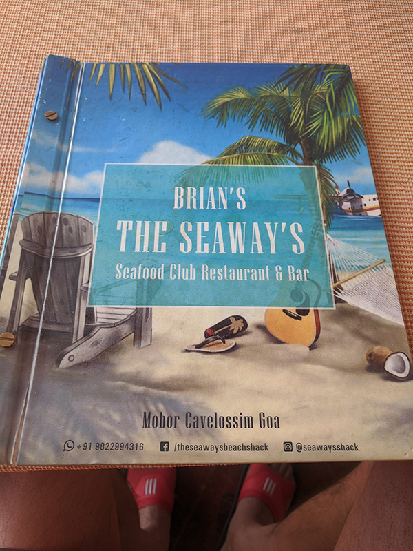 Seaways, Menu Published June 6, 2020, 13:33 at 600 × 800 in Eating by the Water (Goa, Jan 2020) ← Previous Next →