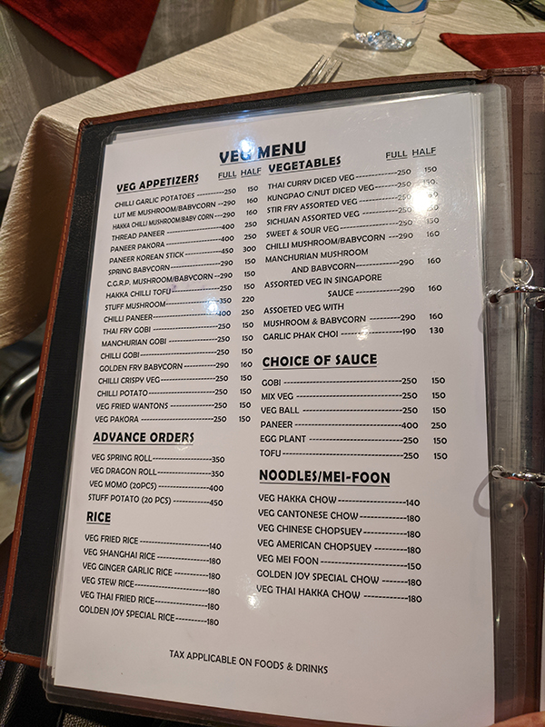Golden Joy, Menu, Veg Published June 27, 2020, 21:43 at 600 × 800 in Golden Joy (Calcutta, Jan 2020) ← Previous Next →