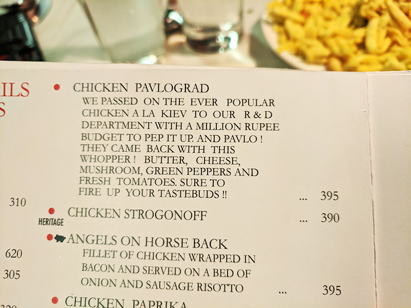 Mocambo, Menu, Chicken Pavlograd Published August 1, 2020, 21:53 at 800 × 600 in Mocambo (Calcutta, Jan 2020) ← Previous Next →
