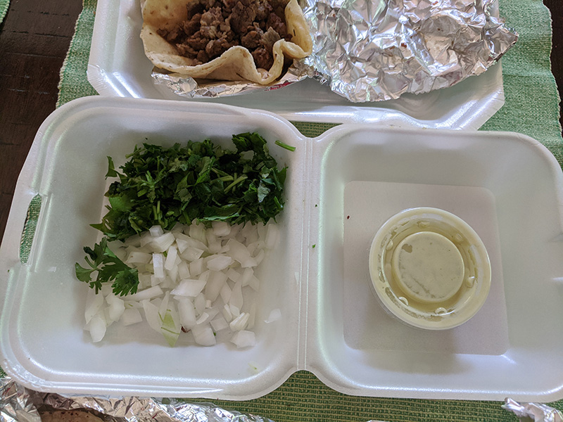 El Triunfo, Taco toppings Published August 17, 2020, 21:53 at 800 × 600 in Pandemic Takeout 20: Back to El Triunfo (Northfield, MN) ← Previous Next →