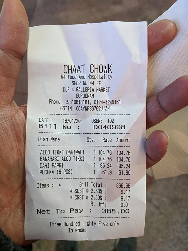 Chaat Chowk, Bill Published August 21, 2020, 23:03 at 600 × 800 in Chaat, Puchka, Chaat (Delhi, Calcutta, Delhi, Jan-Feb 2020) ← Previous Next →