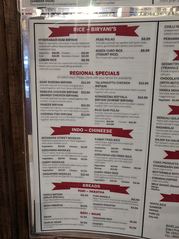 India Spice House, Menu, Rice, Regional Specials, Indo-Chinese, Breads Published October 5, 2020, 21:03 at 600 × 800 in Pandemic Takeout 27: India Spice House (Eden Prairie, MN) ← Previous Next →