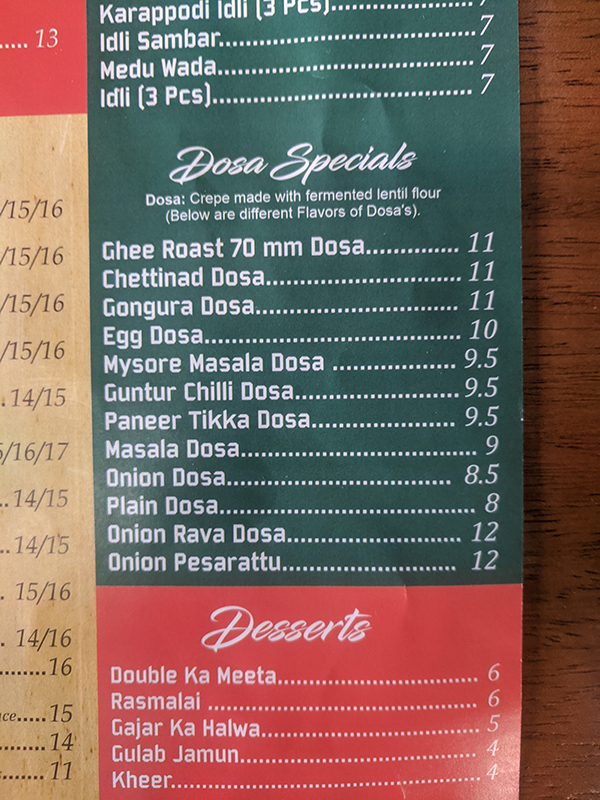 Hyderabad House, Menu, Dosa Specials, Desserts Published November 29, 2020, 13:53 at 600 × 800 in Pandemic Takeout 35: Hyderabad House (Plymouth, MN) ← Previous Next →