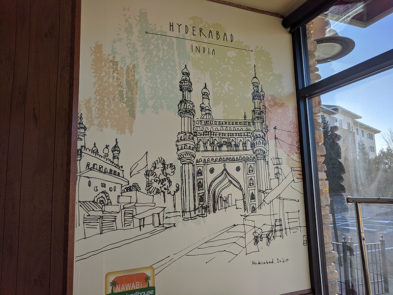 Hyderabad House, Mural Published November 29, 2020, 13:52 at 800 × 600 in Pandemic Takeout 35: Hyderabad House (Plymouth, MN) ← Previous Next →