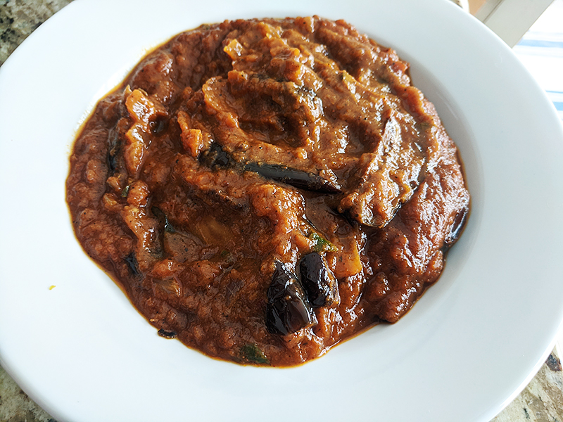 Kabob’s, Fried Eggplant Curry, reheated Published January 25, 2021, 22:22 at 800 × 600 in Pandemic Takeout 42: (Mostly) North Indian Food at Kabob’s (Bloomington, MN) ← Previous Next →