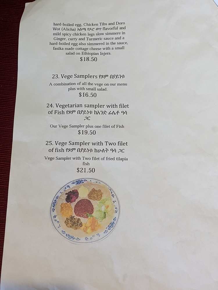 Menu, Veg samplers Published February 9, 2021, 0:29 at 750 × 1000 in Pandemic Takeout 44: Fasika (St. Paul, MN) ← Previous Next →