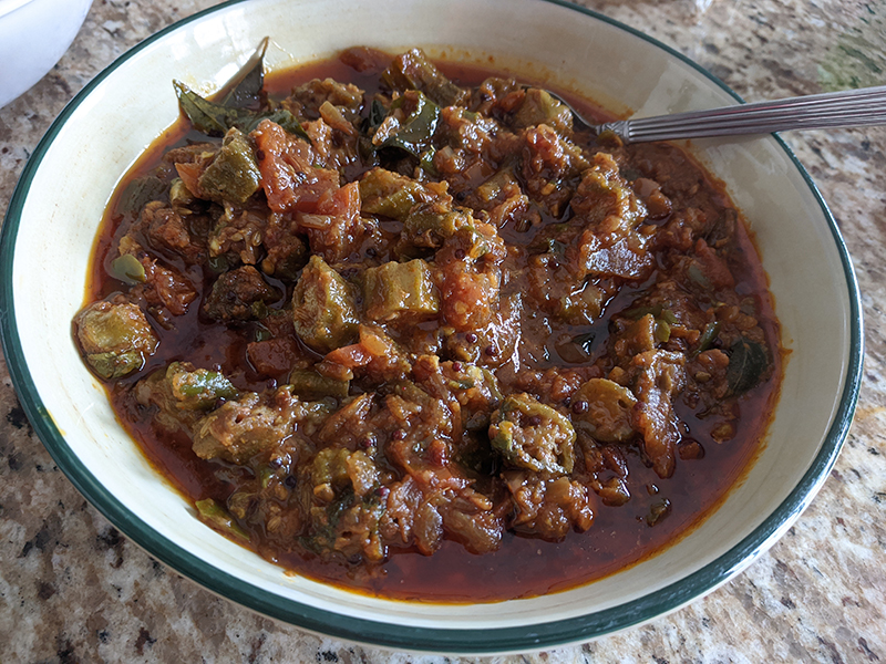 Godavari, Bhindi, reheated Published March 2, 2021, 21:49 at 800 × 600 in Pandemic Takeout 47: Back to Godavari (Eden Prairie, MN) ← Previous Next →