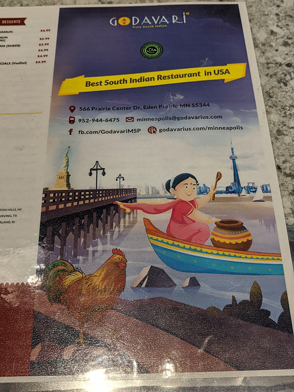 Godavari, Menu Published March 2, 2021, 21:50 at 600 × 800 in Pandemic Takeout 47: Back to Godavari (Eden Prairie, MN) ← Previous Next →