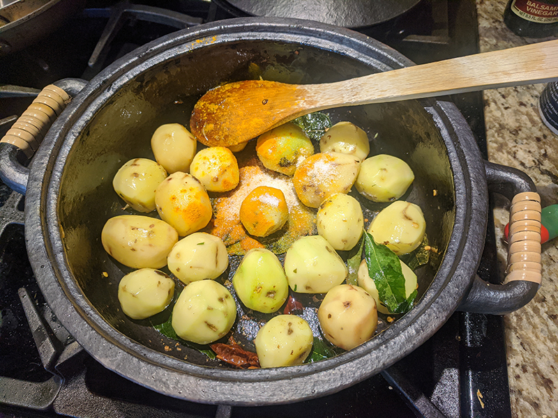 Haldi and salt added Published April 8, 2021, 9:40 at 800 × 600 in Dum Alu with Sesame and Peanut ← Previous Next →