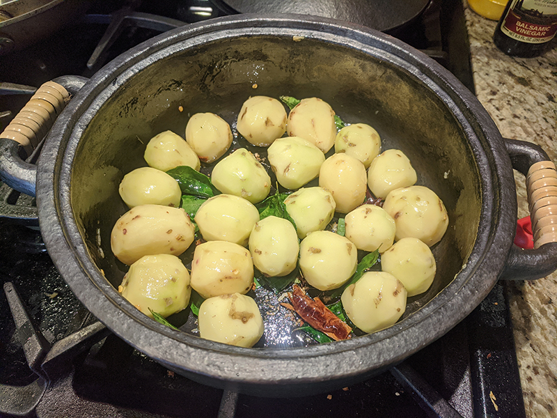 Potatoes go in Published April 8, 2021, 9:40 at 800 × 600 in Dum Alu with Sesame and Peanut ← Previous Next →