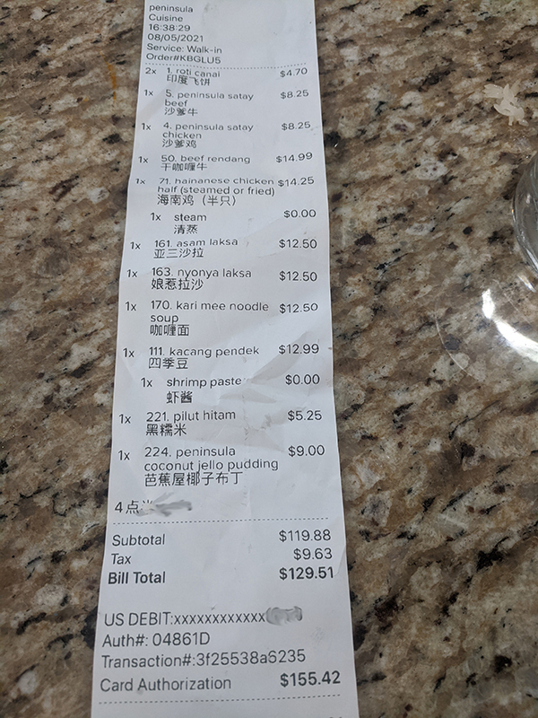 Peninsula, Bill Published May 10, 2021, 21:13 at 600 × 800 in Pandemic Takeout 57: Peninsula (Minneapolis) ← Previous Next →