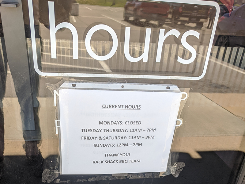 Rack Shack, Current hours Published June 14, 2021, 11:45 at 800 × 600 in Pandemic Takeout 61: Rack Shack (Eagan, MN) ← Previous Next →